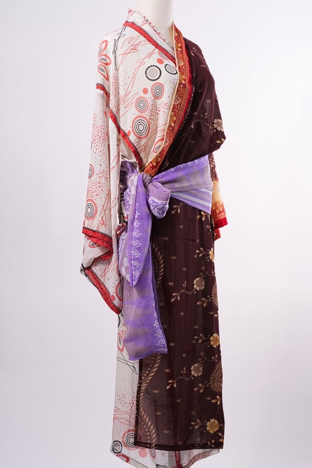商品詳細 下駄総踊りで使用する衣装。2枚のサリー生地を1枚にした衣装。1枚で2枚重ねしているように見えます。 ■サイズ表(身長目安)【実測値のため、多少の誤差はご容赦下さい】 Sサイズ 150cm〜160cm前後 身丈【134cm】 袖丈【50cm】 裄丈【80.5cm】 ■留意事項 ※写真の帯はセットではありません。帯は別売りとなりますので、お好きな柄の帯と衣装を合わせてコーディネートください。 ※スリランカで現地の方が購入する用に作られたもので、輸出用に特別作られたものではありません。シミや小さな穴、汚れがある場合もございます。予めご了承いただいてからのご購入をお願いいたします。 ※ビーズなどの装飾は性質上、少しずつ落ちる物なので、部分的に若干欠けている箇所があることがございます。 ※染料の関係で独特の臭いが付いている場合もございます。気になる方は、着用前にお洗濯か天日干ししてからお楽しみ下さい。