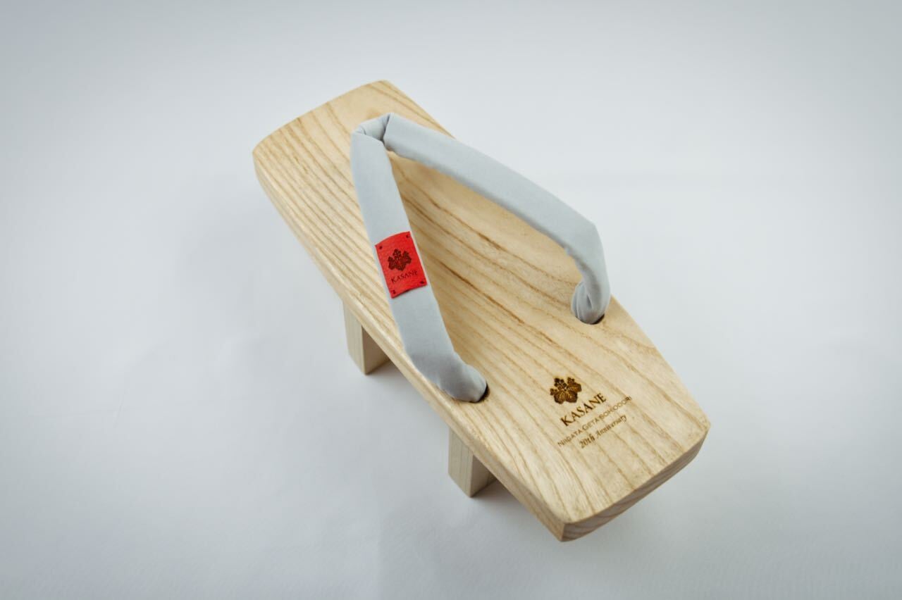 新潟下駄総踊りが20周年を迎える記念に、四代目 小林正輝氏による完全オリジナルデザインで誕生した特別モデル 「KASANE(かさね)」。