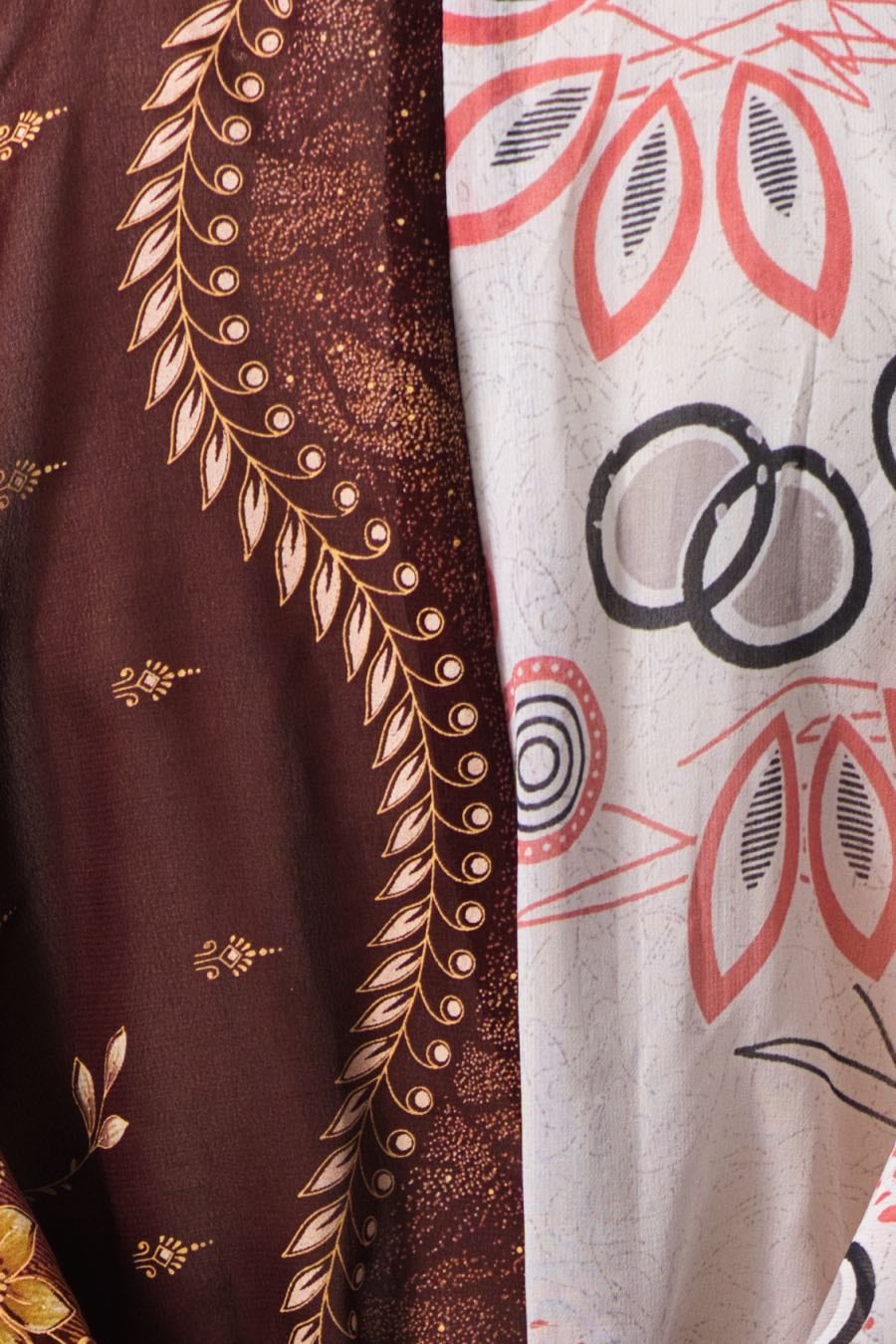 下駄総踊りで使用する衣装。2枚のサリー生地を1枚にした衣装。1枚で2枚重ねしているように見えます。