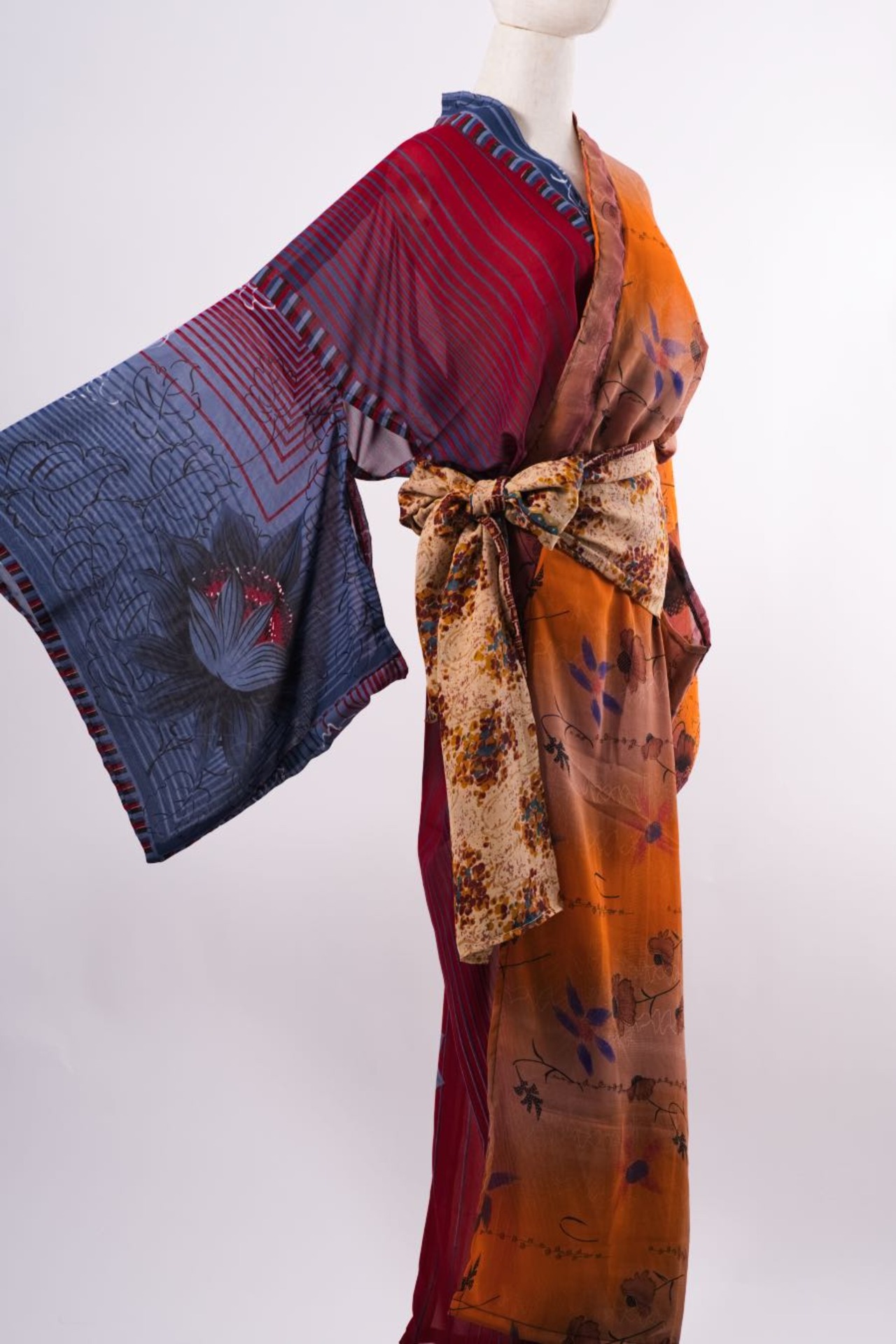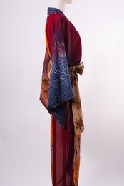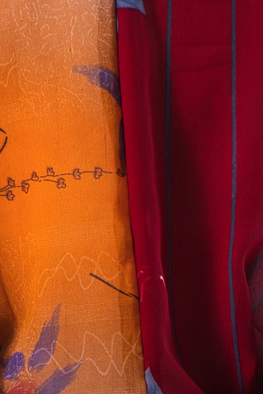 下駄総踊りで使用する衣装。2枚のサリー生地を1枚にした衣装。1枚で2枚重ねしているように見えます。