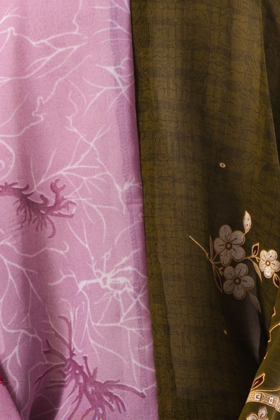 下駄総踊りで使用する衣装。2枚のサリー生地を1枚にした衣装。1枚で2枚重ねしているように見えます。
