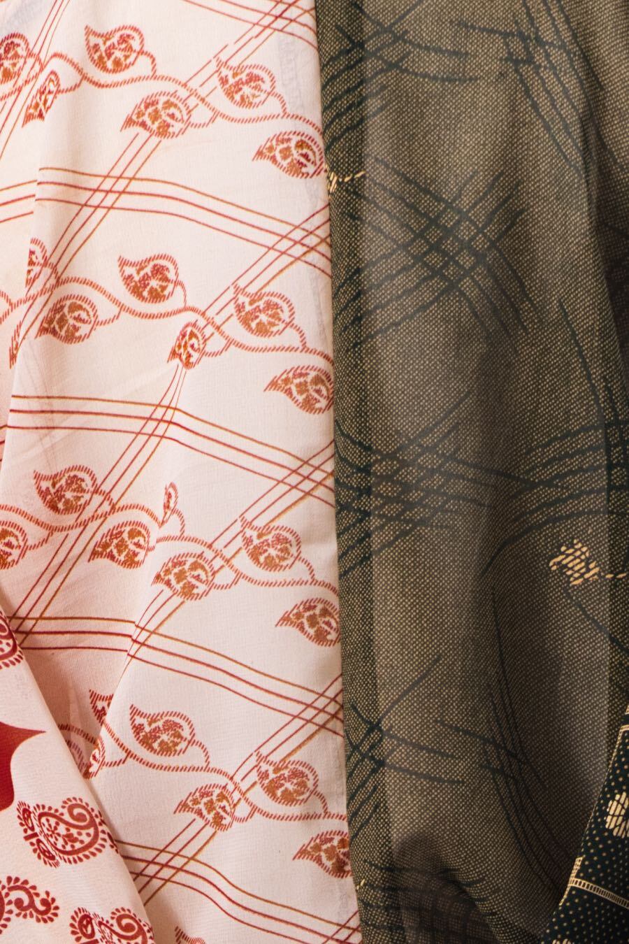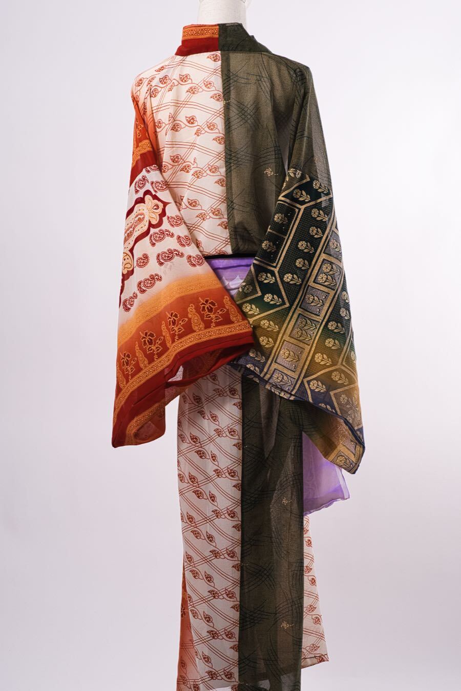 下駄総踊りで使用する衣装。2枚のサリー生地を1枚にした衣装。1枚で2枚重ねしているように見えます。